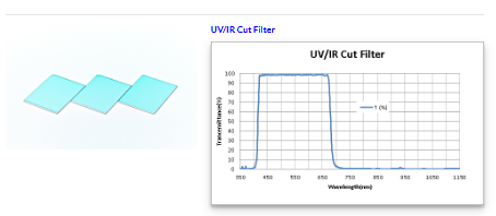 UV/IR cut filters cut ultraviolet rays (UV) and infrared rays (IR), which are unnecessary for image sensor image formation and are sources of heat generation and noise.